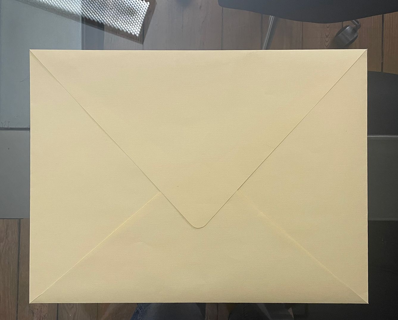 Otro de los retos técnicos del mes fue el diseño de un sobre a medida para el envío de láminas del artista Antonio One. El encargo requería un soporte de 30 × 40 cm en un gramaje de 350 gramos. El objetivo era encontrar una solución estructural sencilla y elegante, que no necesitara dobleces complejos ni pegamento. Tras varias pruebas de corte y plegado, logramos un prototipo funcional que respeta la estética minimalista del estudio.
