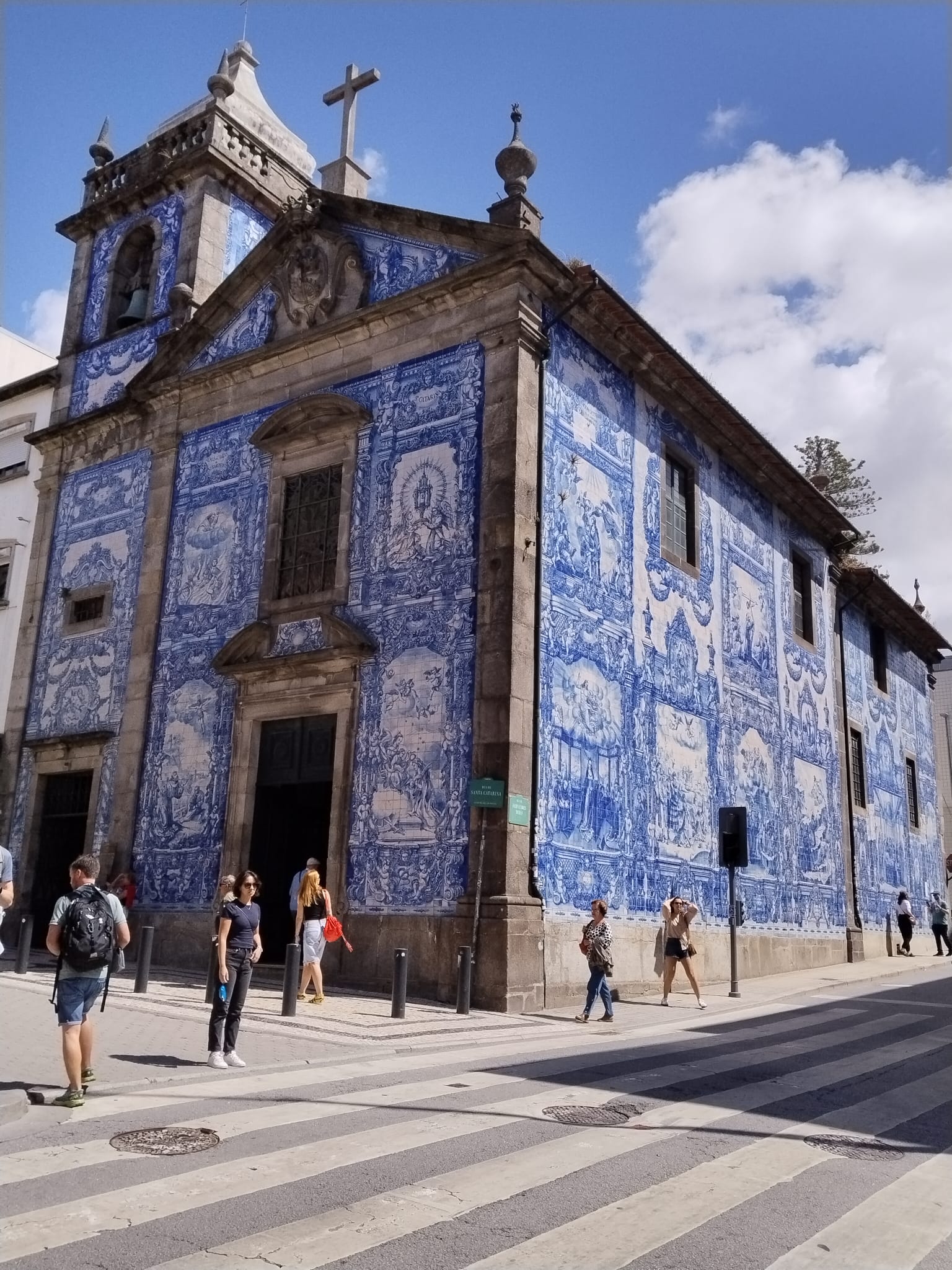 El primer fin de semana lo dediqué a conocer Oporto. Paseé sin rumbo para familiarizarme con las calles, los tranvías y el ambiente de la ciudad. Una de las paradas que más me impresionó fue la Capela das Almas, con su espectacular fachada cubierta de azulejos blancos y azules que narran escenas de la vida de varios santos. El interior también era precioso. Me fascinó la mezcla de historia, arte y vida cotidiana que se respira en cada rincón.